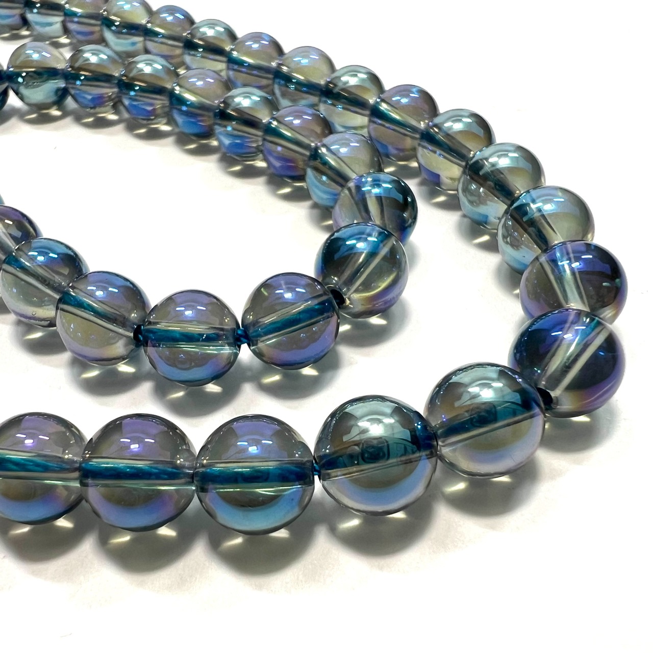 水晶に蒸着加工という人為的な処理を施した石で、宇宙をイメージさせる神秘的で美しい輝きを放ちます。